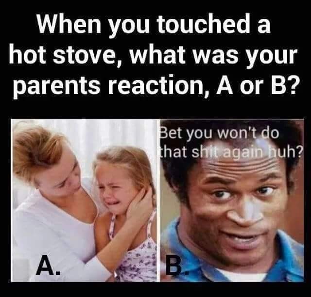 Când te-ai fript din greșeală de cuptor, care a fost reacția părinților tăi.