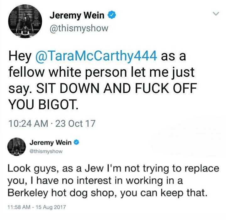 2) Mi se pare comic că naziștii mă reclamă la twitter pentru că sunt evreu și fac glume despre genocidul alb.