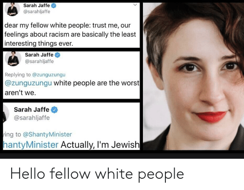 Spun ceva de genul: “Sunt și eu alb ca și voi, iar noi albii ar trebui să …. ” și aici urmează atacul împotriva albilor.