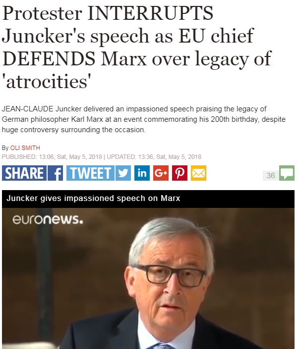 Jean-Claude Juncker a adus un omagiu evreului Karl Marx, în cadrul unui memorial care demonstrează relevanța contemporană a vechii influențe pe care Marx a avut-o în crearea și extinderea Uniunii Europene în, și, după Tratatul de la Roma din 1957, dar și în cercurile ideologice din anii 1880 până în anii 1920, care au dezvoltat impulsul pentru planul unui sistem federal pan-european de a submina rasele Europei, așa cum a fost mai târziu articulat de Kalergi în dezgustătorul său Idealism practic.