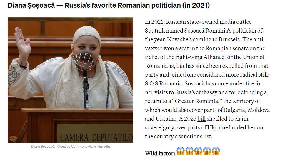 La clasamentul de pe Politico, Diana Șoșoacă apare cu “factor WOW” de cinci emojiuri cu expresie îngrozită.