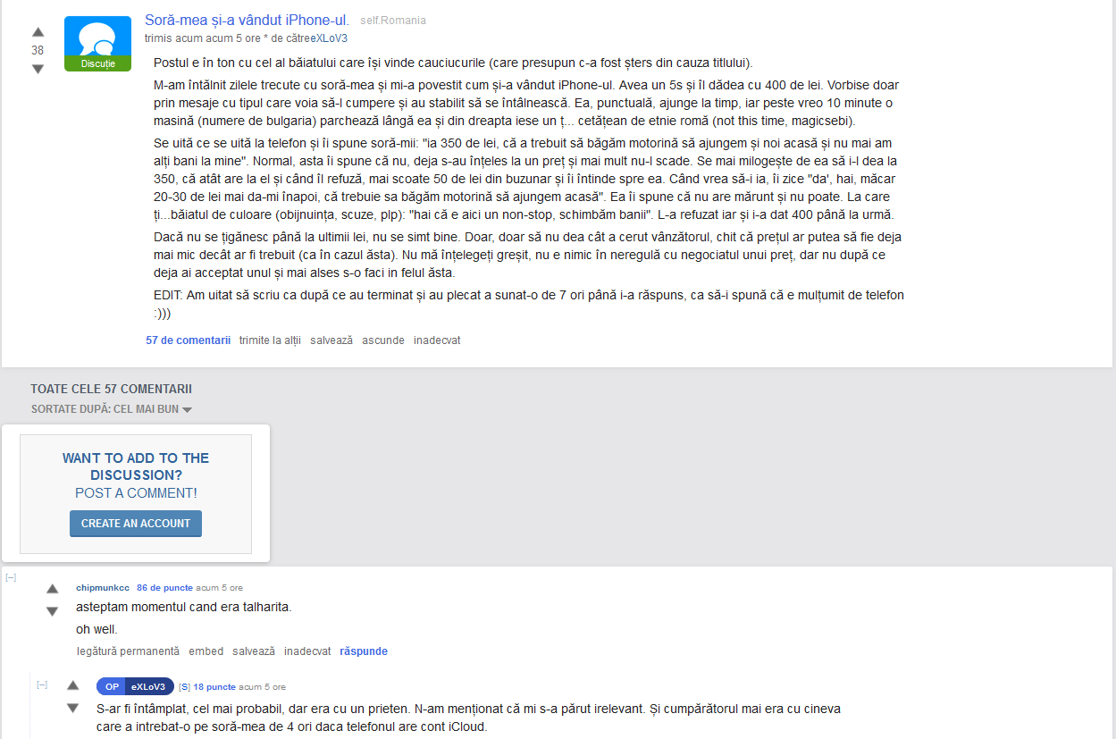 Aceasta a fost o mostră, o poveste care a străpuns cenzura Reddit și a scăpat prin filtrul autocenzurii.