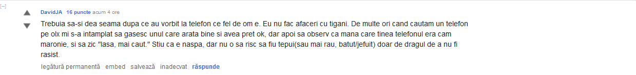 Majoritatea oamenilor, având contact cu lumea, cunosc tendințele țiganilor, dar unii dintre ei se autocenzurează pentru a nu primi voturi negative ori pentru a nu fi făcuți ‘rasiști’, această sperietoare de cuvânt care își pierde din putere cu cât e folosit mai des.