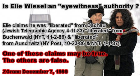 Cu acest prilej, publicam un text cu titlul „Un mare martor fals: Elie Wiesel“ în care arătam că acesta din urmă era un martor fals, care își luase obiceiul să povestească fel de fel de lucruri despre pretinsul „Holocaust“ al evreilor și, mai cu seamă, despre Auschwitz.