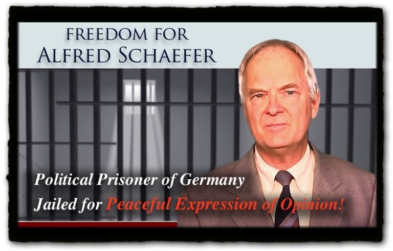 Trustul plutocratic al jidanilor l-a condamnat pe dl.Schaefer la 4 ani de temnițā grea în Germania, începând din iulie 2018, pentru „incitare la ură“, pentru delict de opinie sau nesupunere civicā in numele „Holocaustului“, demascarea steagului fals al jidanilor, organizat asupra Americii din 11 septembrie 2001 şi un discurs pe care l-a ținut la un miting din februarie 2017 în Germania, orașul Dresda.