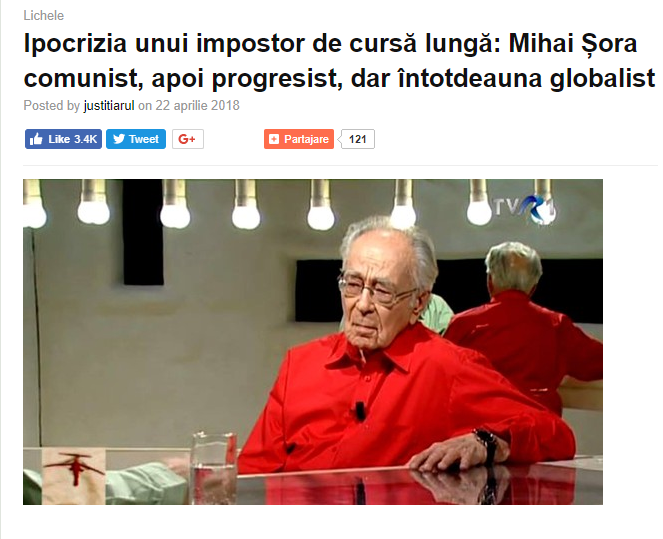 Reamintire că Mihail Șora este literalmente bolșevic globalist.