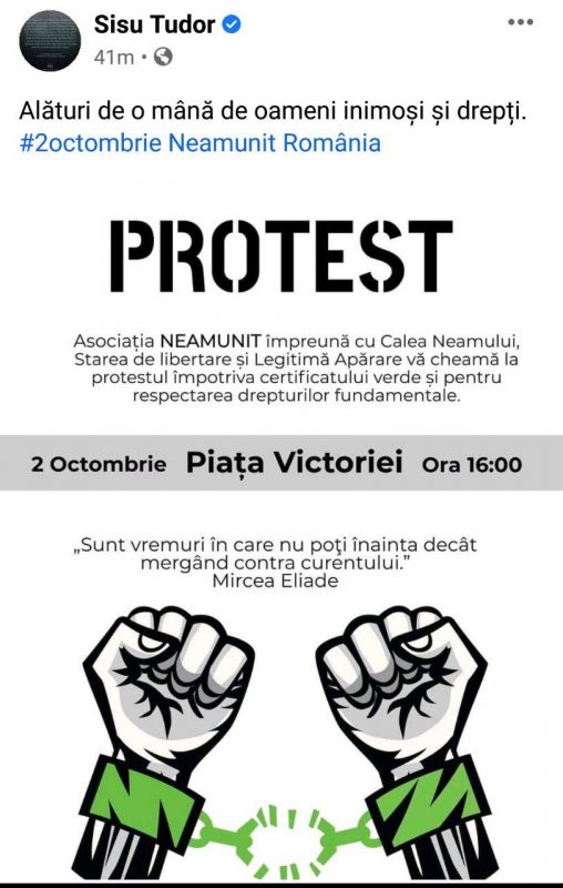 Nota redacției: Ar fi fost bine să fie un singur protest la care să participe toți, aparent cuțitul nu a intrat destul de adânc dacă rivalitățile personale sau certurile dintre organizații ne împiedică să ne unim într-un singur protest masiv pentru o cauză comună.
