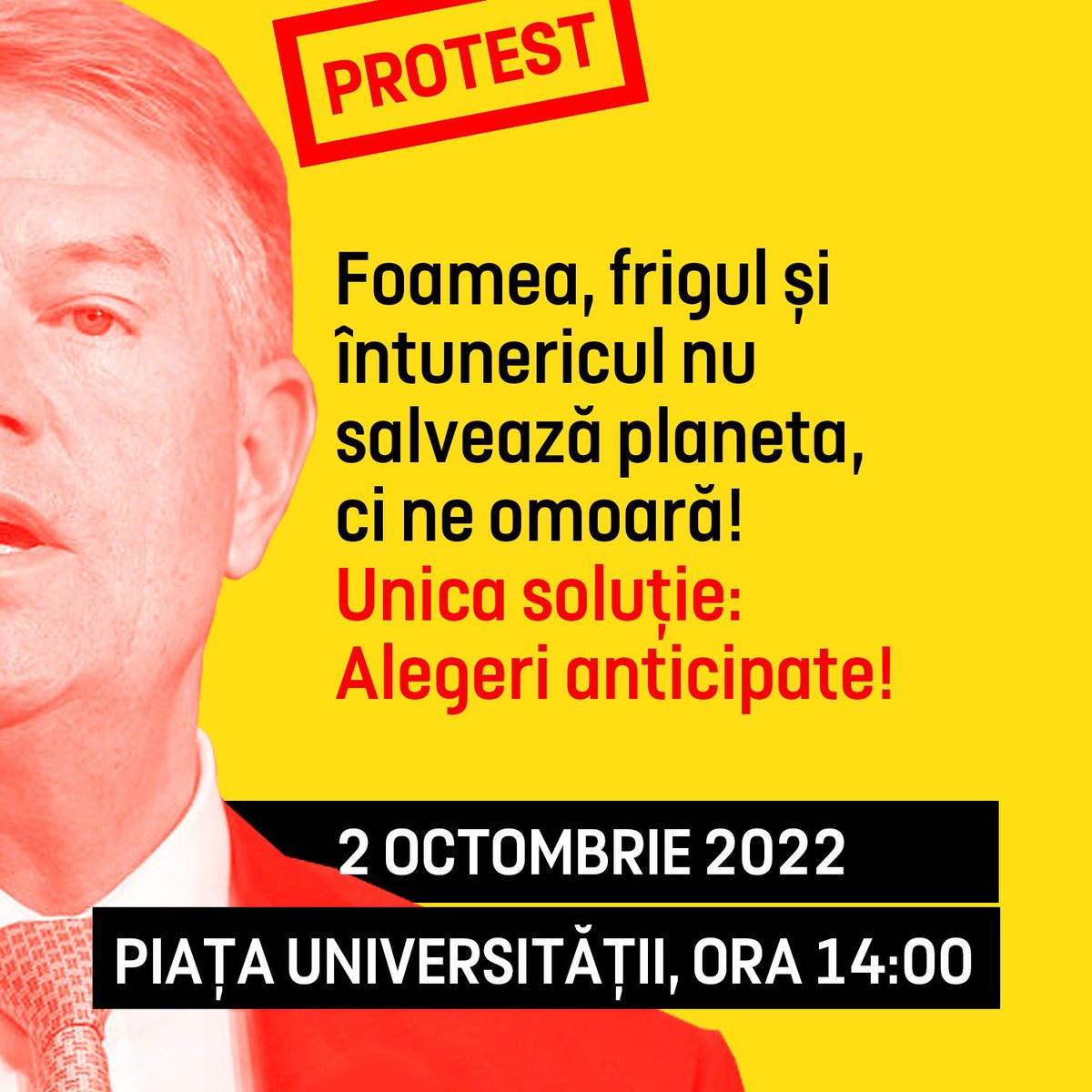 Duminică, 2 octombrie 2022, începând cu ora 14:00, în Piața Universității din Capitală este anunțat un protest masiv, la care și-au anunțat participarea români din întreaga țară și din străinătate.