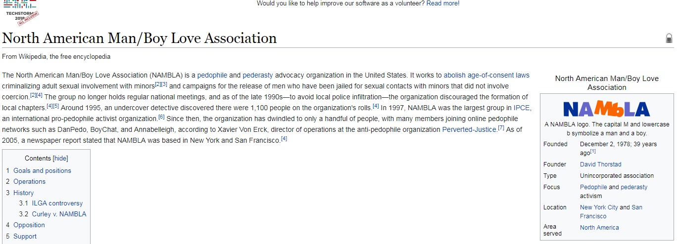 Tot Vice s-a chinuit să pună într-o lumina pozitivă NAMBLA (asociația nord americană pedofilă). NAMBLA se lupta să decriminalizeze relațiile pedofile și să dovedească faptul că și copiii sunt capabili să își dea acordul pentru a avea relații cu un pedofil.