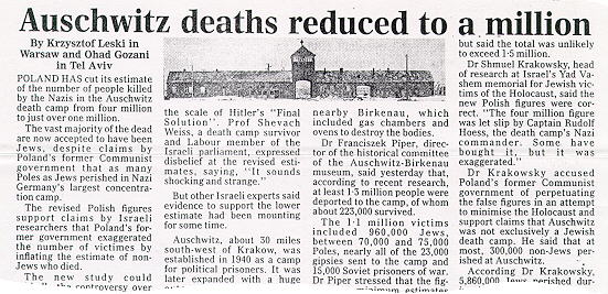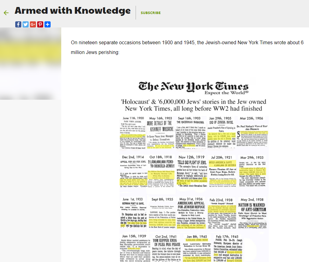 Între anii 1900 și 1945, ziarul evreiesc New York Times a scris de 19 ori articole în care se vorbește de 6 milioane de evrei care sunt pe cale să fie uciși.