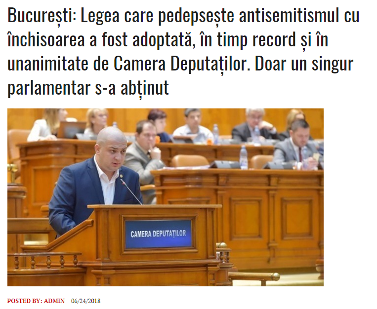 Asta fiindcă evreii nu au nici o putere și influență, dar au reușit să facă parlamentarii să voteze această lege în timp record și în unanimitate.