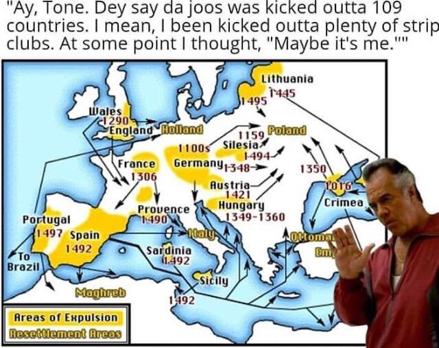 Hei, Tony, se spune că evreii au fost dați afară din 109 țări.