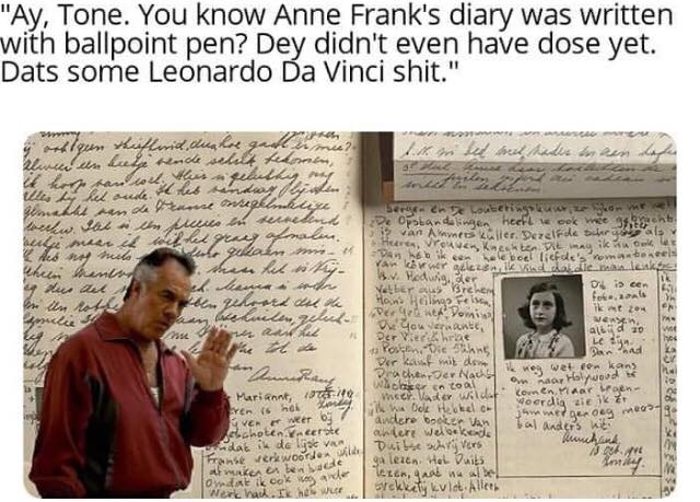 Hei, Tony, știai că jurnalul lui Anne Frank a fost scris cu pixul?