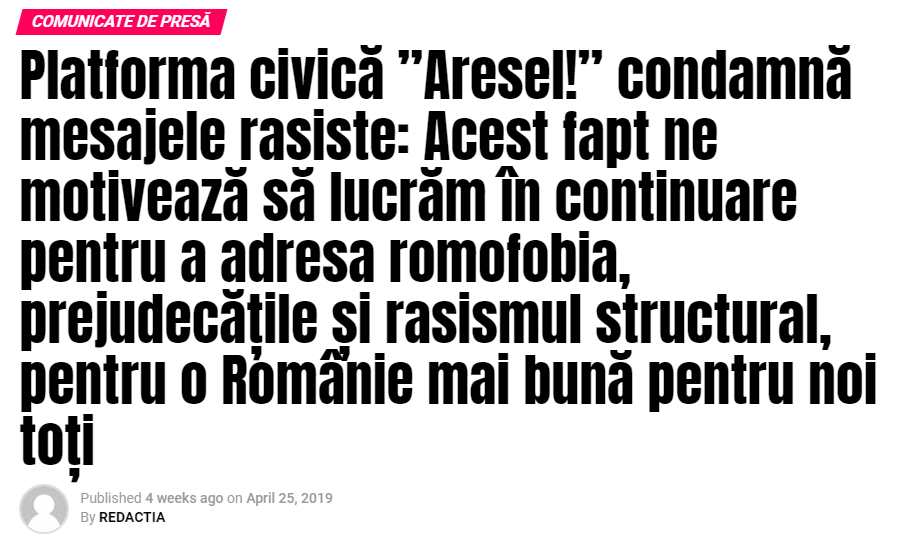 ”Putere romilor!” este mesajul central al campaniei #Aresel! #Ajunge!, ce se va desfășura în timpul campaniei electorale pentru europarlamentare”.