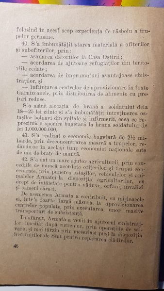 - S-a realizat o economie bugetară de 2½ miliarde, prin desconcentrarea masivă a trupelor, redându-se în același timp economiei naționale sute de mii de brațe de muncă.