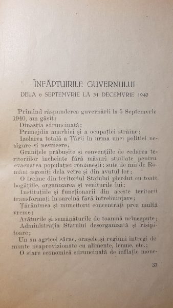 Primind răspunderea guvernării, la 5 septemvrie 1940, am găsit: