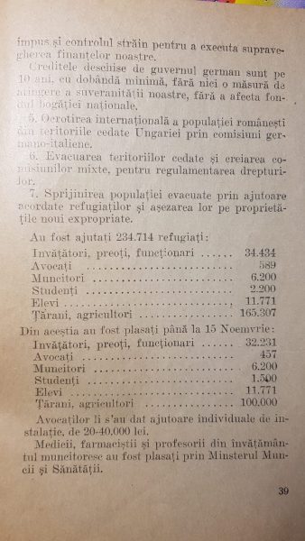 - acordarea de ajutoare refugiaților din teritoriile cedate;