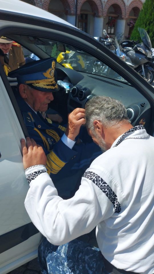 Marian Motocu primind binecuvântarea de la Generalul Radu Theodoru.
