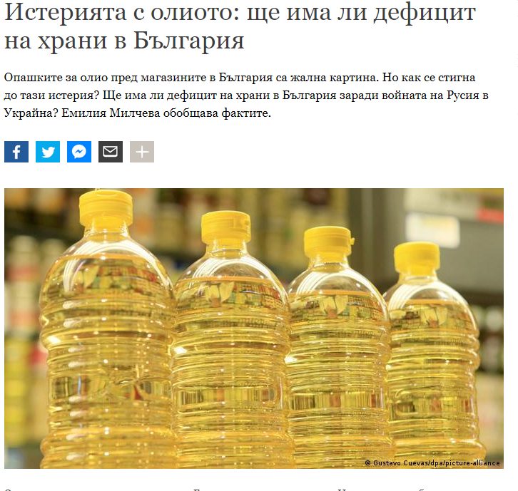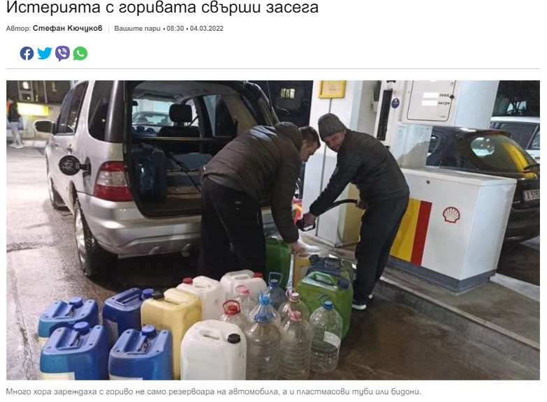 Țineți minte cozile enorme de la benzinăriile din marile orașe? Cum s-au blocat efectiv străzile căci au ieșit mulți cetățeni îngrijorați de creșterea prețului la combustibil, îngrămădindu-se, stând cu orele să alimenteze mașinile cu benzină și motorină la preț mai mare ca oricând. Apoi, la două zile după nebunia asta, în magazine rafturile cu ulei erau goale, oamenii cumpărau ulei în draci, auzind de la trupele de ocupație mentală că s-ar putea ajunge la o criză de ulei de floarea soarelui în urma sistării exporturilor din Ucraina.