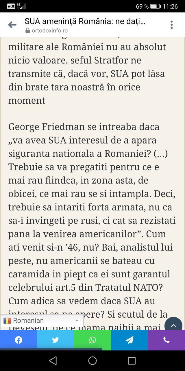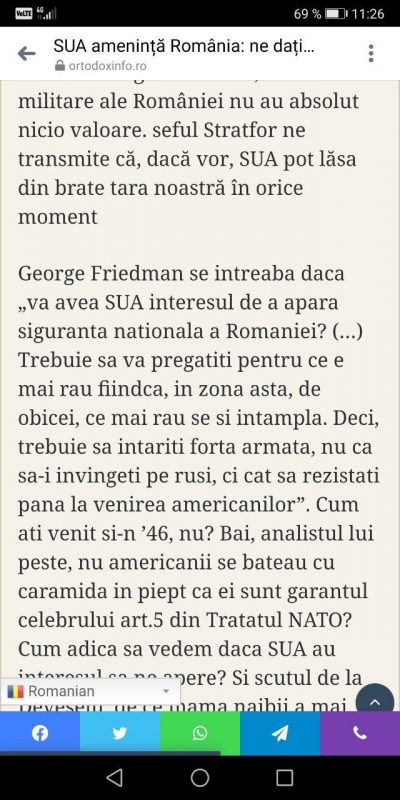 • Americanii nu vor risca un război nuclear cu Rusia chiar dacă Rusia atacă România, oricum noi pentru ei (SUA) suntem niște paria.