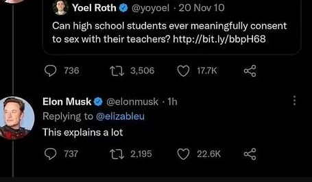 „Se pare că Yoel în favoarea lăsării copiilor să folosească sevicii pentru adulți pe internet în teza sa de doctorat”, a scris Elon Musk pe Twitter, postând și o captură din documentul respectivului, scrie Daily Mail.