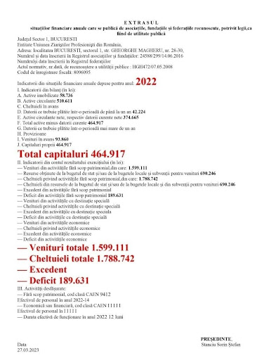 În octombrie 2021, după complicații în urma Covidului, moare și lasă UZPR „în pauză de publicitate”! Din actele depuse la Monitorul Oficial observăm că UZPR moștenea „un pic” peste 650.000 de lei din mandatul lui Glăvan. La finalul anului 2023, după 2 ani și ceva de interimat (ceea ce nu s-a mai pomenit până acum), mai rămân puțin peste 450.000. Aflăm mai jos unde au dispărut banii și cine s-a înfruptat de bugetul Uniunii (anual, UZPR încasează între 1.500.000 de lei și 2.000.000 lei din cotizații și alte donații), dar și multe dintre mașinațiunile interimatului.