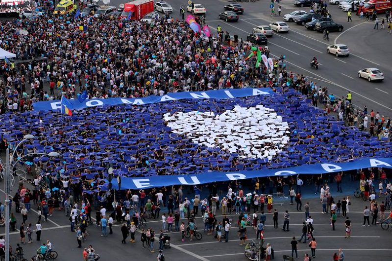 Vestea bună a fost că i-a venit cuiva ideea să vopsească mânuțele galbene în zmeuriu, să le inscripționeze cu TOȚI PENTRU EUROPA și să le transforme în produse reciclabile, pentru noile mitingeli la care participă aceiași cetățeni, cărora însă li se furnizează alte lozinci de strigat.