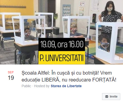 Home / Evenimente / Școala în cușcă și cu botniță? Protest anunțat pe 19 septembrie