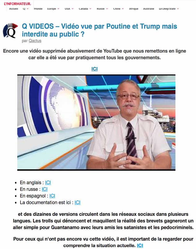 Publicată de către Q-actus, organismul de informații Q-anon (US Intelligence Service), sub formă de Q-Videoclip, această informație precizează că președinții Trump și Putin, ca și, practic, toți guvernanții lumii, au văzut videoclipul Jasper Mader din 20 august, care denunță fabricarea virusului Covid-19 de către Institutul Pasteur, dinn Franța. A se citi josul paginii e-mailului (Piesa 7).