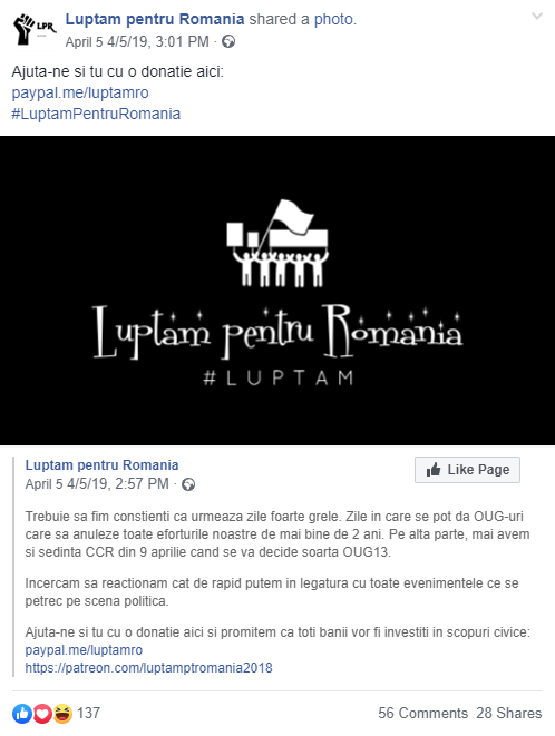 Deci da, donați ca să ne țină la curent cu acțiunile lor de protest, viitoare și posibile. Având în vedere nivelul de analfabetism furibund de pe facebook, cred că a strâns și niște bănuți. Din păcate, frauda asta este în limite legale, iar reclamația la facebook este inutilă, evident că nu încalcă nimic din TOS, nu se văd sfârcuri nicăieri.