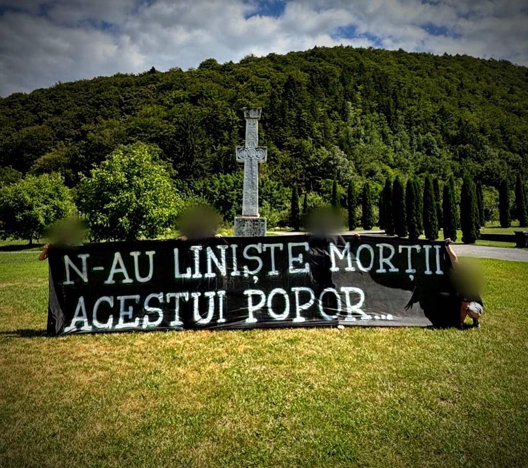 FOTO: CMZ RO: “N-au liniște morții acestui popor..” După ce în viață au fost persecutați de către comuniștii antiromâni și atei, nici după moarte nu sunt lăsați în pace, ci sunt persecutați de către comuniștii de azi. Zilele Rezistentei, 2025