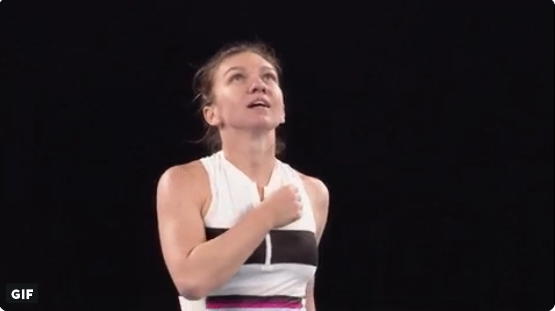 Imediat după punctul care i-a adus victoria în partida cu americanca Sofia Kenin, Simona Halep s-a însemnat cu semnul Crucii.