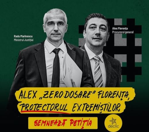 Noi, semnatarii și semnatarele acestei petiții, vă cerem să îl revocați de urgență pe procurorul general Alex Florența pentru eșecul său total în aplicarea legii anti-extremism. Florența a lăsat neonaziștii și legionarii să acționeze nestingheriți, cu zero dosare trimise în judecată și zero consecințe. Este responsabilitatea ministrului Justiției să intervină și să pună capăt acestei protecții periculoase oferite extremismului prin inacțiunea procurorului general.