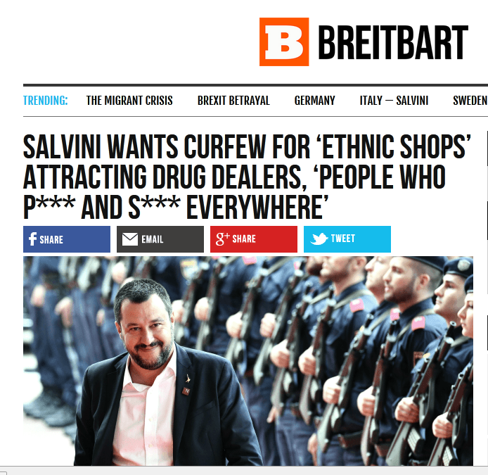 Salvini vrea ca magazinele “etnice” (a se citi negri, musulmani și alți colorați – nu cred că se referă la magazinele etnice rusești sau poloneze) să se închidă la 9 seara.