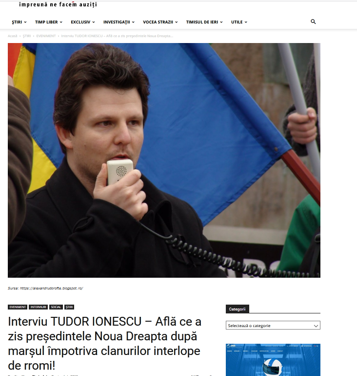 “Marşul din Timişoara „România nu tolerează ţigănia”, organizat de mişcarea Noua Dreaptă, şi-a dorit să fie un semnal de alarmă pentru trezirea timişorenilor. Trezirea lor pentru a începe să tragă de instituţiile publice să facă ceva împotriva clanurilor de rromi din Timişoara care deja „stăpânesc oraşul”.