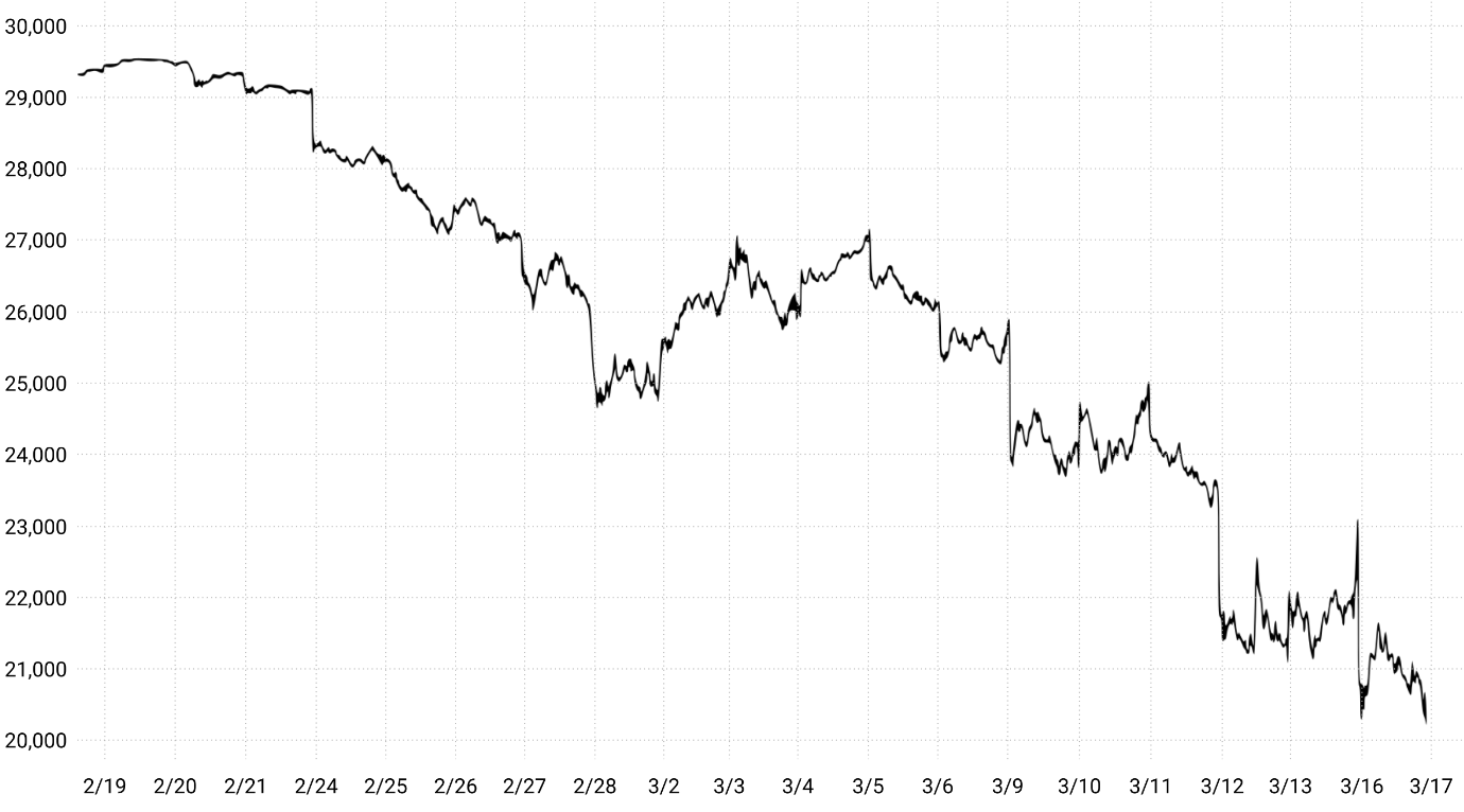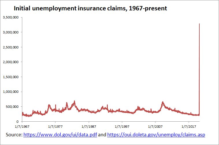 19 Martie. Departamentul Muncii al Statelor Unite dezvăluie un nou record – 3 milioane de americani și-au pierdut slujba până în acel moment. Cel mai mare vârf până atunci, din timpul Marii Recesii din 2008, a fost de 700 de mii de noi șomeri. Acum atât bursa americană, cât și numărul de șomeri arată a linii verticale. În alte cuvinte, SUA intră oficial în A Doua Mare Depresie.