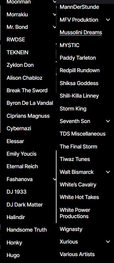 Acest site are o selecție bogată de artiști naționaliști albi din diferite țări, pe care îi unește ura împotriva minorităților și dorința de a-și elibera țările de sub “jugul jidovesc”.