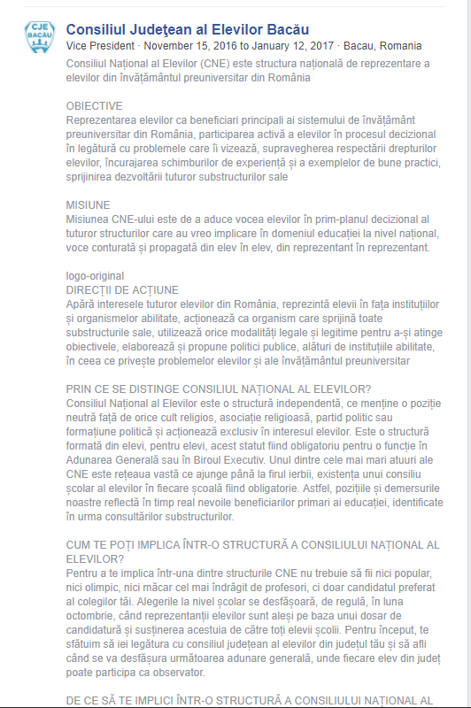 Desigur este membru și în Consiliul Național al Elevilor, instituție care își asumă abuziv reprezentarea tuturor elevilor din România și care este condusă de Petru Apostoaia, suținător al educației sexuale în școli.