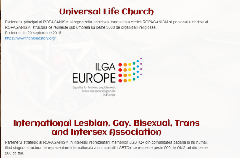 Pe pagina Ropaganism apar mai multe asociații partenere, printre care unele sataniste sau homosexuale: