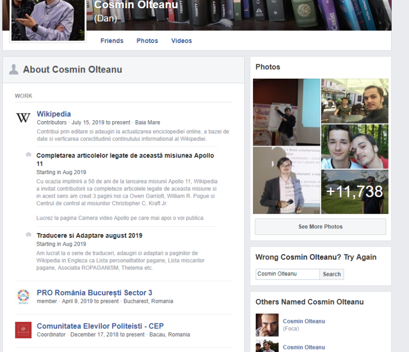 Cosmin Olteanu, după cum am spus și mai sus, este un tânăr care se consideră a fi „neo păgân” originar din Bacău, acum fiind în Baia Mare, după datele de pe facebook ale acestuia. Ceea ce este destul de interesant este faptul că acesta a susținut că homosexualii au un rol special, fiind speciali. Să nu uităm că și el este un homosexual, considerând că este ceva normal și chiar nu îi este jenă, postând chiar și pe facebook aniversarea lui cu iubitul acestuia de 5 luni.