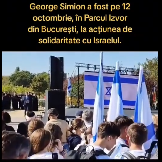 Activiști AUR – presupușii paladini ai suveranității – fluturând steaguri Israeliene în România, la un eveniment pro-Israel.