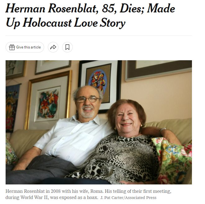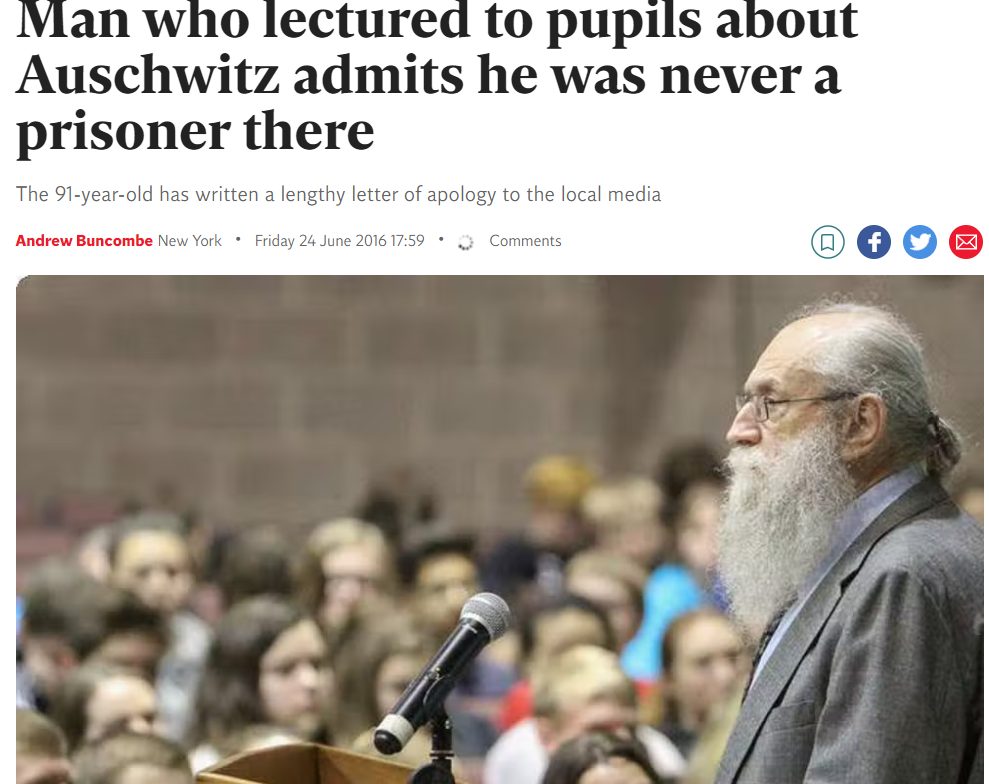 ”Supraviețuitor al Holocaustului “ care a predat zeci de ani copiilor despre ororile pe care le-a întâmpinat acolo …recunoaște ca a inventat toate poveștile și ca nu a fost niciodată prizonier.