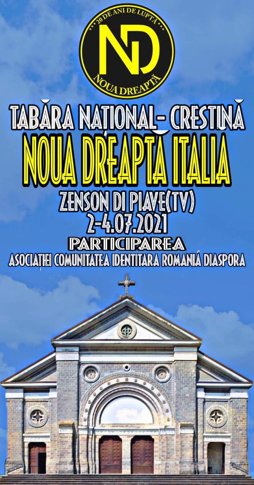 Bună ziua , sunt Grigoraș Cristi , coordonatorul filialei Noua Dreaptă Italia; și anul acesta filiala noastră a organizat întâlnirea naționaliștilor români din Italia, ca și anul trecut și anul acesta au participat camarazi italieni de la Forza Nuova. S-a discutat despre: reîntoarcerea noastră în țară și cum ar trebui să ne implicăm în viața socială și politică din România , transmiterea mesajului nationalist-creștin in cadrul comunității românești din Italia.