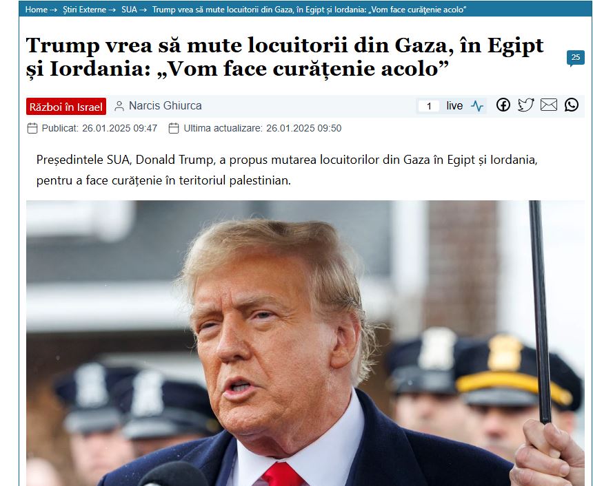 Trump vrea să rezolve problema palestiniană prin eliminarea cu totul a palestinienilor din Palestina January 30, 2025 Chestiunea Jidănească, Știrea zilei 5 Vlad Voicu | Păcat, este golem filosionist. Read More »