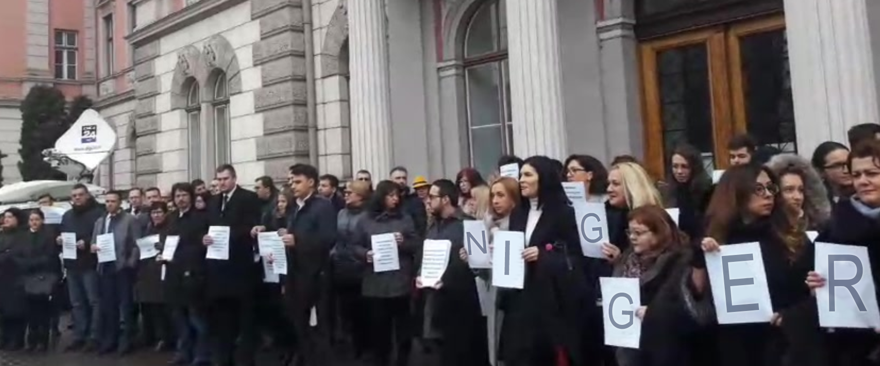 În semn de protest împotriva unei ordonanțe de urgență, niște magistrați în frunte cu judecătorul-cu-aspect-de-pedofil Cristi Dănileț, care spune că pedofilia nu este o infracțiune, au ieșit joi pe trotuar să afișeze foi A4.