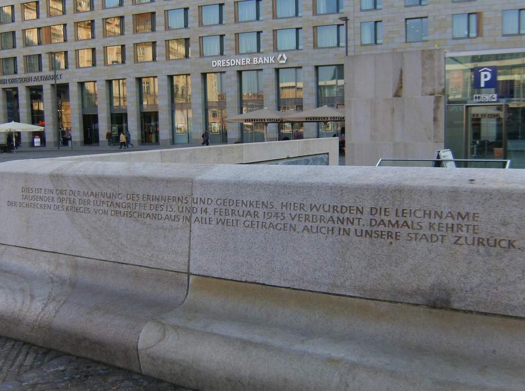 Inscripția memorială din centrul Dresdei a fost scoasă! Aceasta le reamintea oamenilor că orașul a suferit în februarie 1945 cel mai barbar(și inutil) bombardament din Al Doilea Război Mondial. Englezii și americanii au utilizat bombe cu fosfor, culcând la pământ aproximativ 78 000 de clădiri.