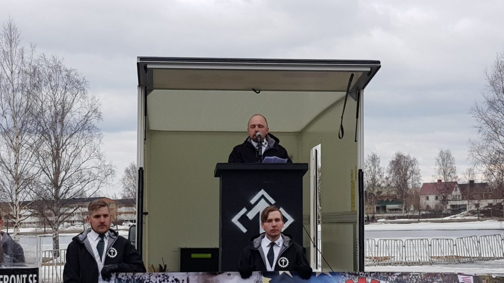 There were several speeches held. The Leader of the Nordic Resistance Movement, Simon Lindberg, was one of the speakers.