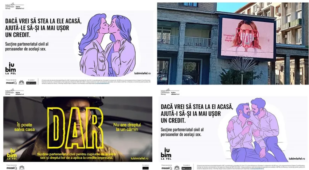Începând de miercuri, 1 noiembrie, pe străzile din Capitală și-au făcut apariția panouri stradale cu mesaje pro-homosexualitate și în favoarea parteneriatului civil între persoane de același sex.