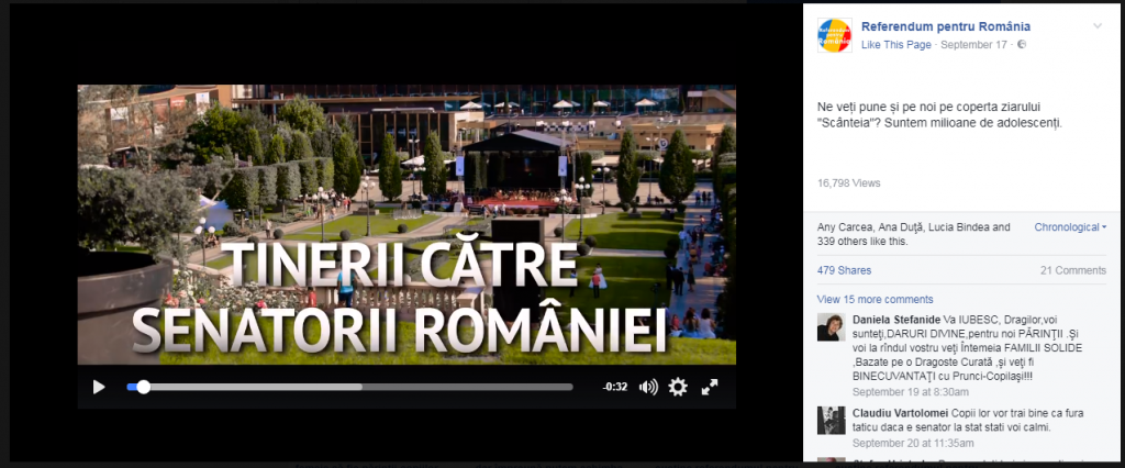 Noi clipuri video de promovare a referendumului în care apar tineri din toată ţara sunt făcute publice pe paginile de Facebook Coaliţia pentru Familie şi Referendum pentru România. A venit rândul tinerilor din Alba Iulia să apeleze la senatori pentru ca aceştia să dea aprobarea finală pentru iniţiativa cetăţenească de clarificare a definiţiei căsătoriei în Constituţia României.