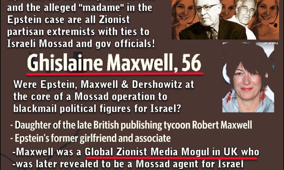 “The deceased American financier and convicted sex offender Jeffrey Epstein and his girlfriend Ghislaine Maxwell were Israeli spies who used underage girls to blackmail politicians into giving information to Israel, according to their alleged Mossad handler.